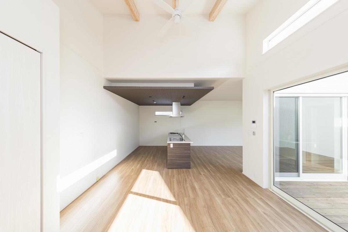 キッチンはアイランドキッチンを採用し、リビングに引き戸を設けることにより、プライベートとパブリックを簡単に空間区分できました。