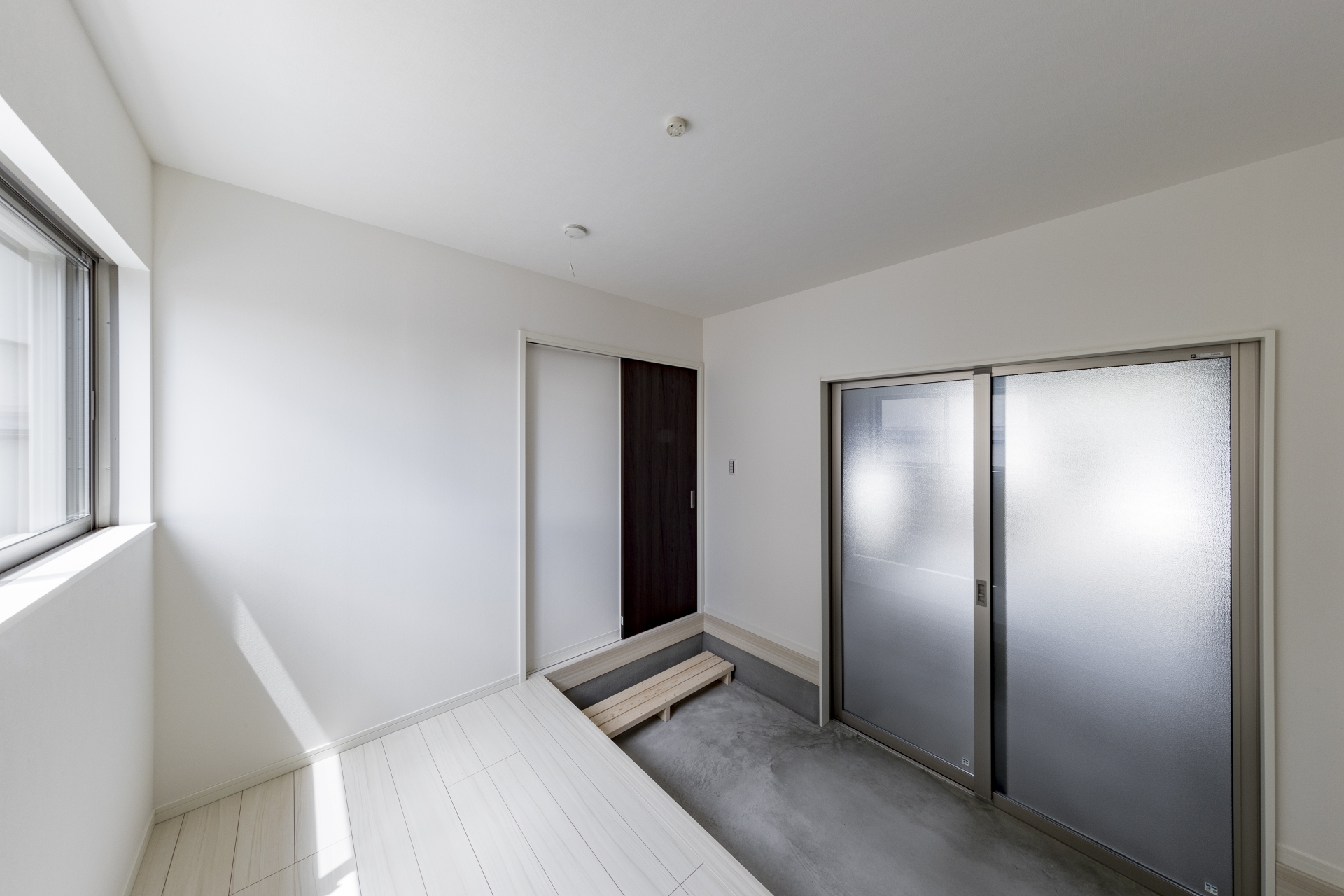 外観は白を基調とし、アクセントが上品さを際立たせるシンプルモダンなデザイン。各所に配置された“スクエア窓”が印象的で、個性を感じる佇まいです。