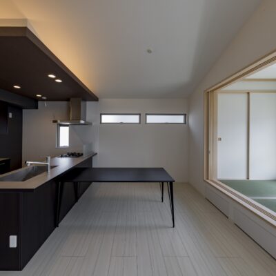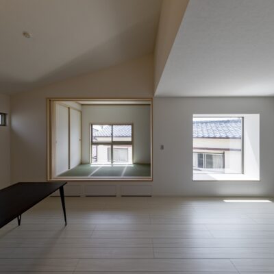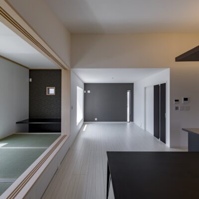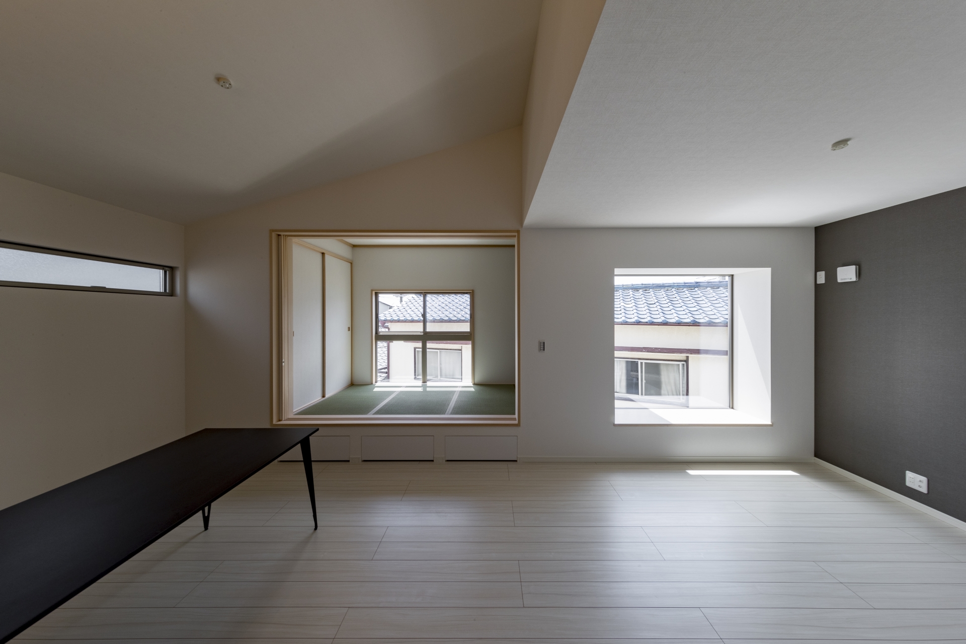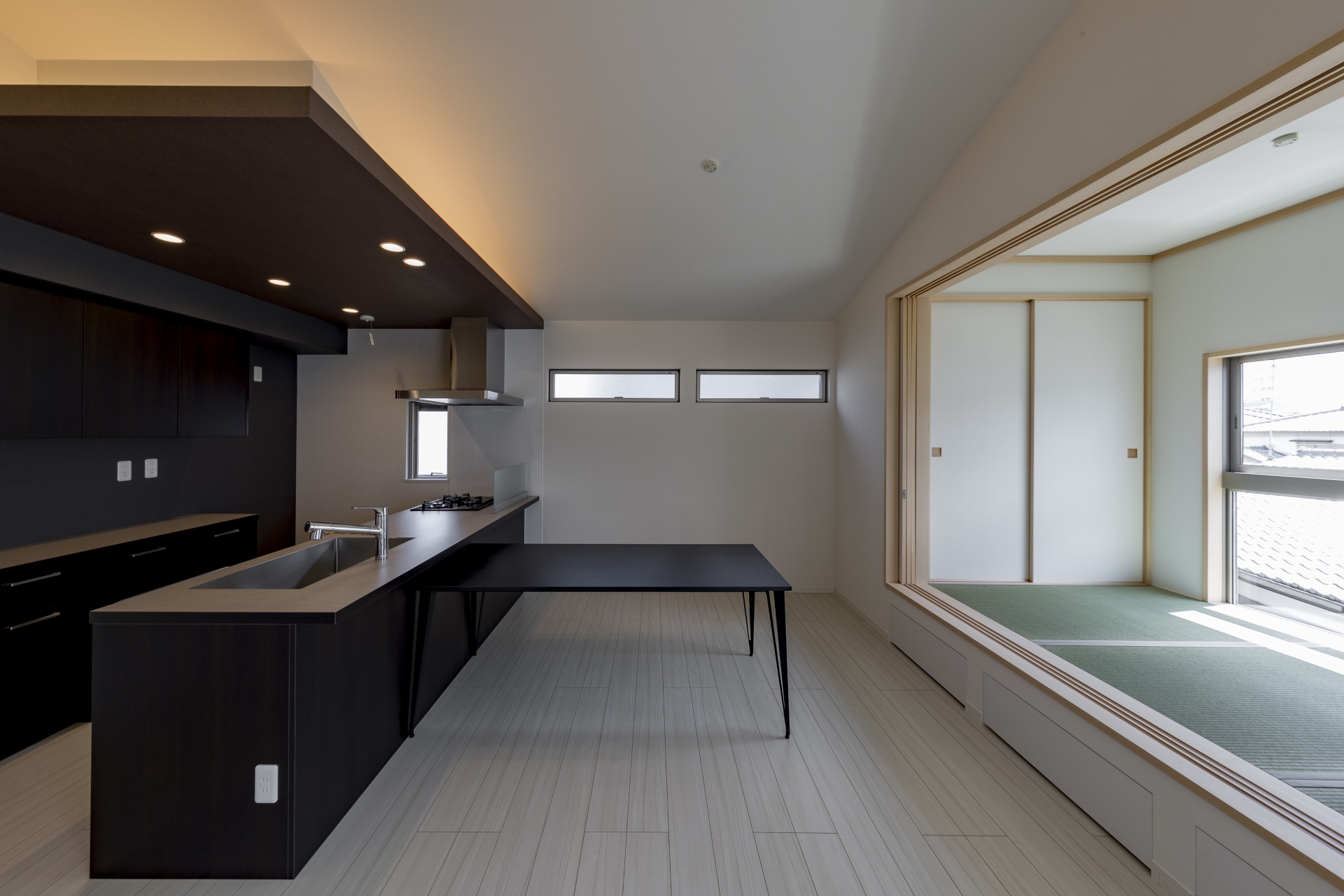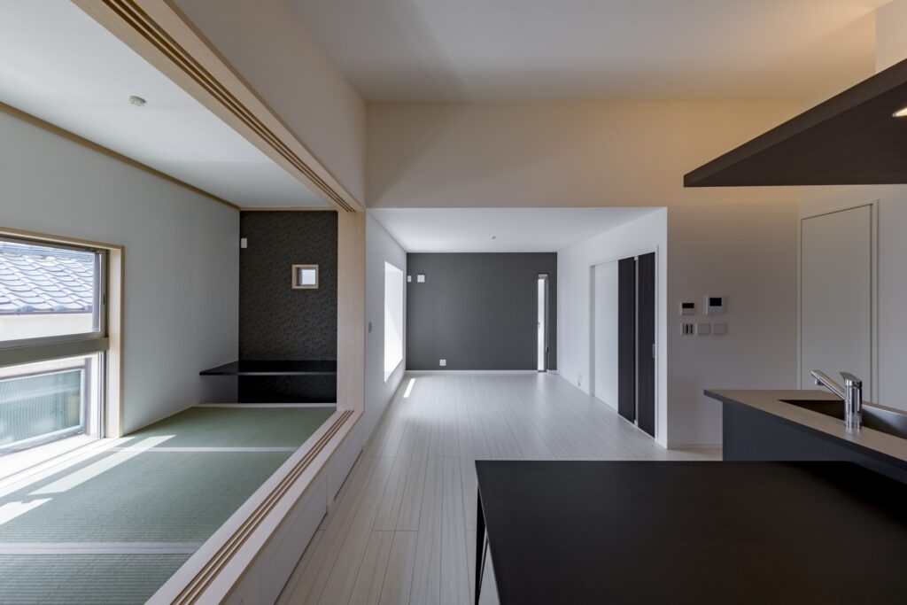 さらに、ダイニング横には小上がりの畳コーナーを配置。床下収納を備え、機能性も抜群です。食後のくつろぎスペースとしてはもちろん、小さなお子様の遊び場にも最適。掘り込み式のカウンターは机として利用でき、書斎や家事スペースとしても活躍します。