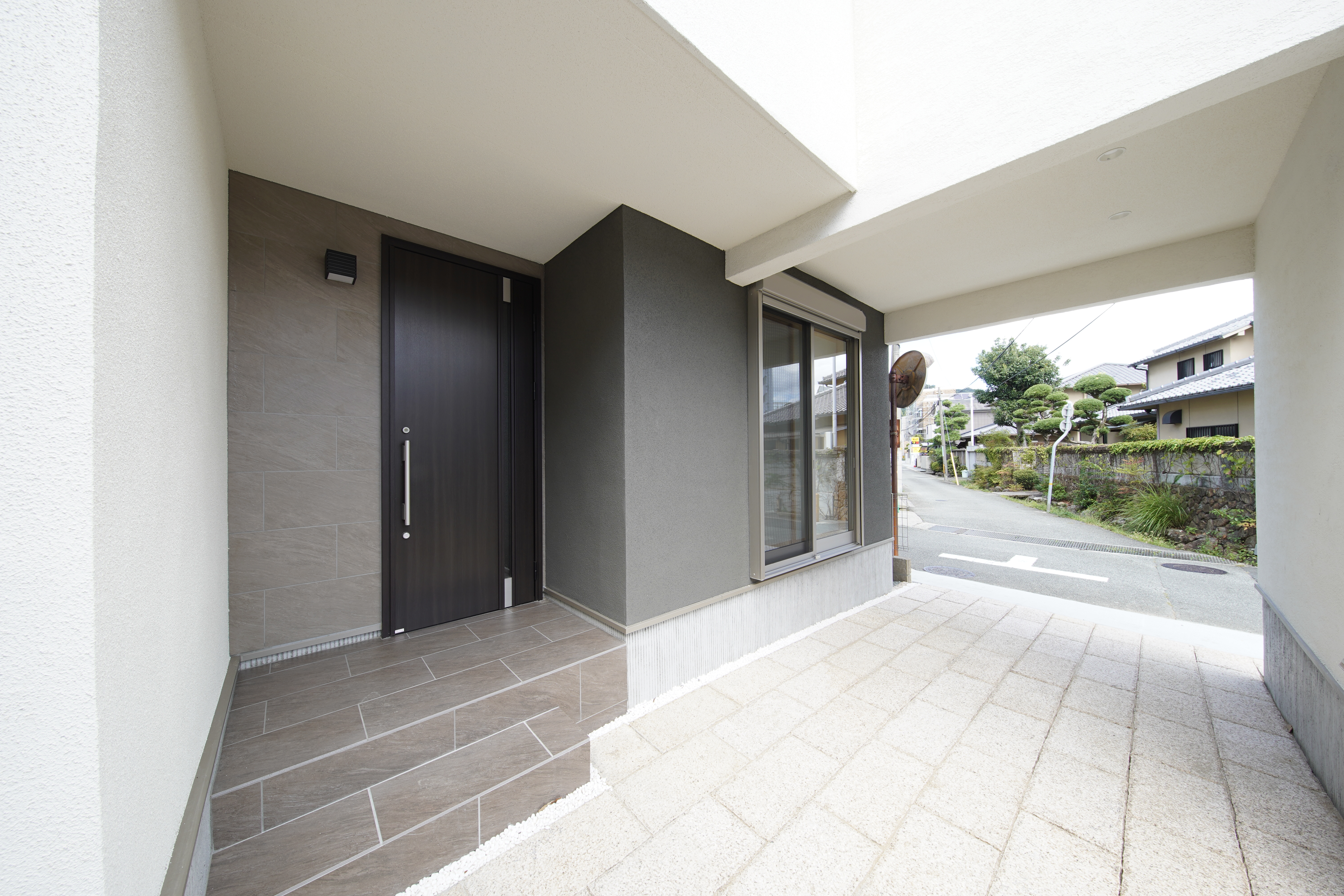 外観はふかし壁とアクセントカラーを取り入れ、シンプルながらデザイン性を高めた上品な佇まいに仕上げました。
