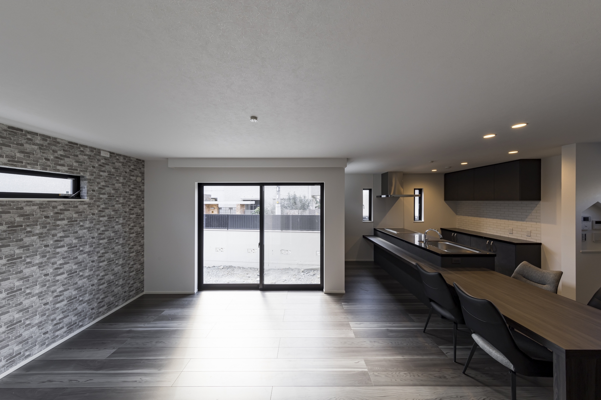 トップ / 施工事例 / ダークトーンに映えるアクセントクロスの家| 兵庫県宝塚市