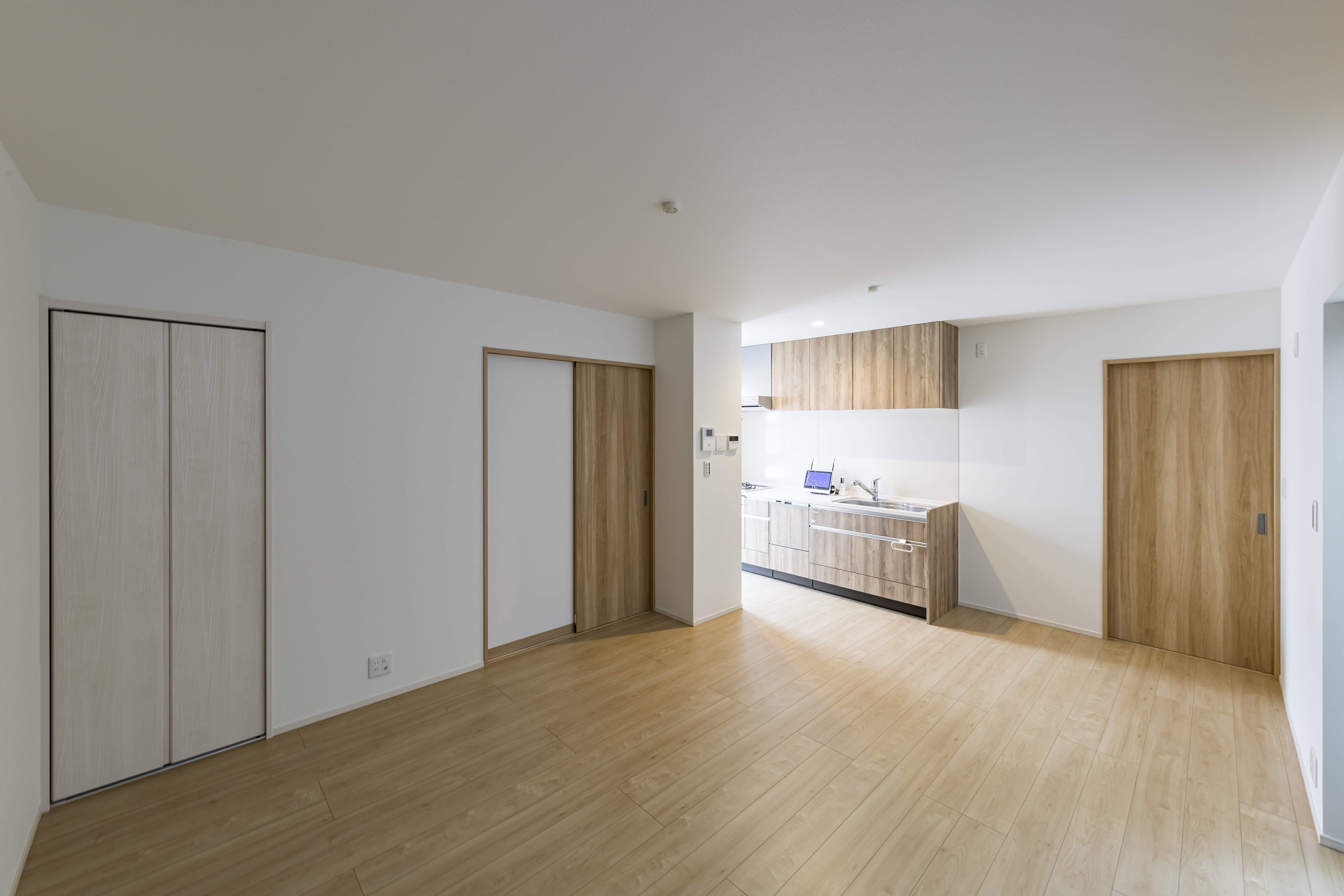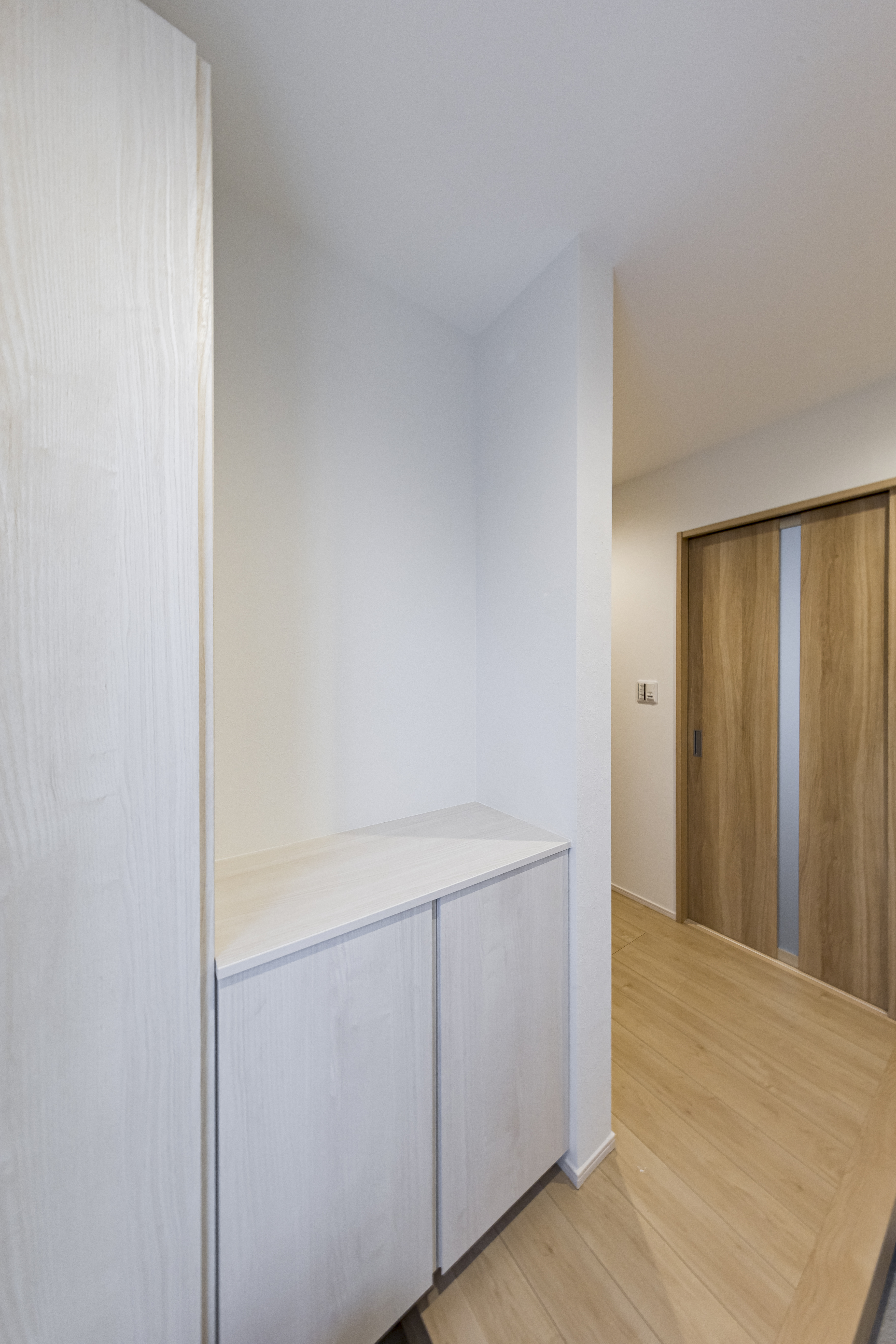 ご家族皆様の願いは「笑って暮らせる、暖かい家」。 その想いをスタート地点に、窓の形や照明の位置、壁紙や使いやすい設備、間取りや動線に至るまで、ひとつひとつのご要望を整理し、丁寧に詰め込んで完成したお住まいです。
